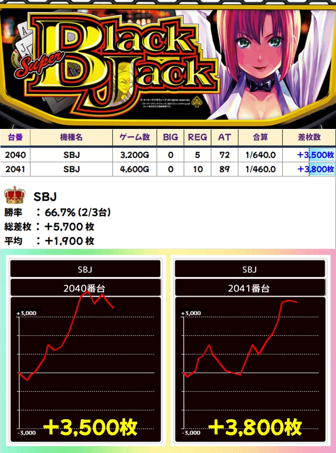 SBJ(2/3台+)➡平均+1900枚