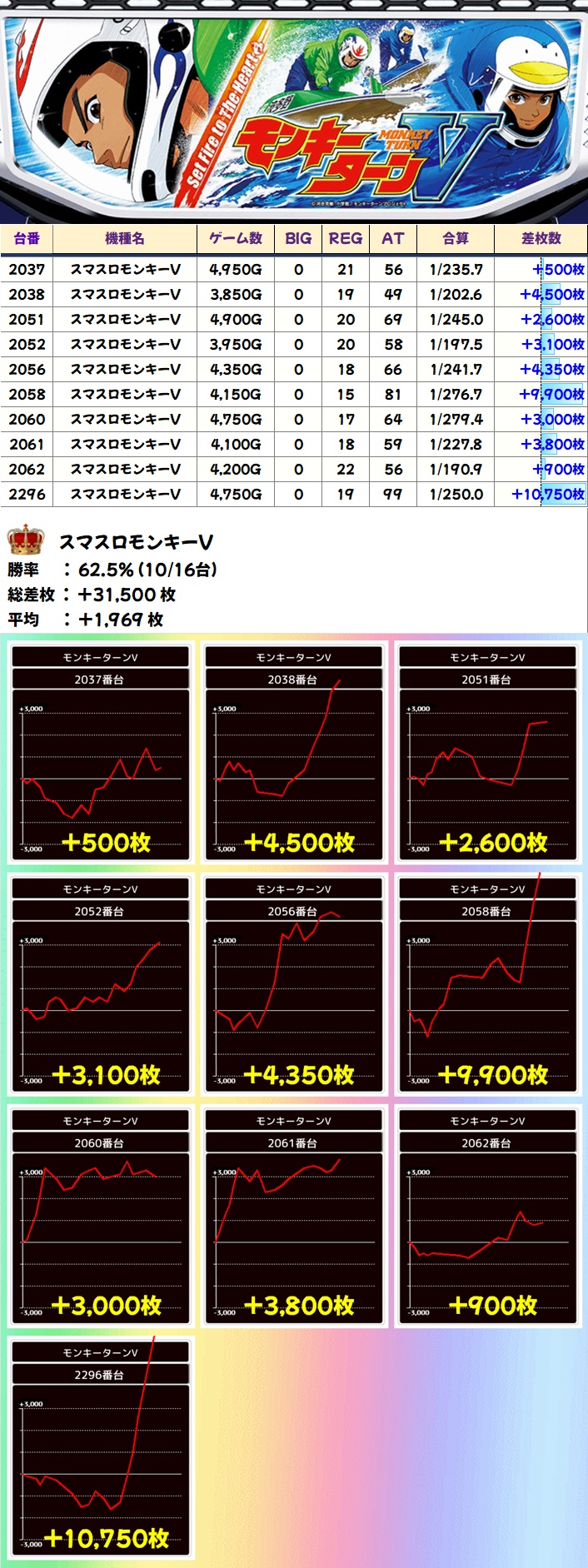 モンキーターンV(10/16台+)➡平均+1969枚