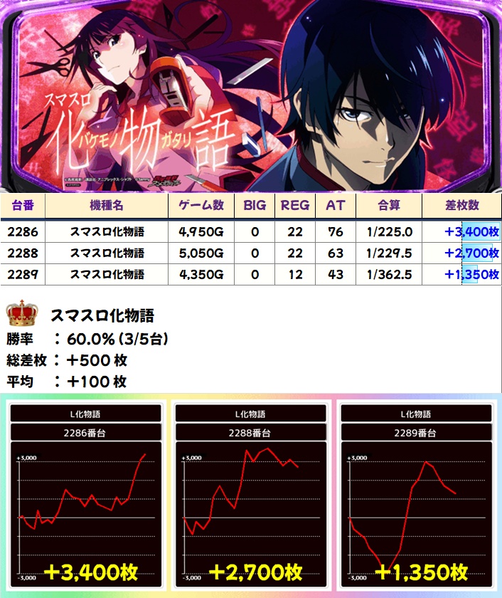 スマスロ化物語(3/5台+)➡平均+100枚