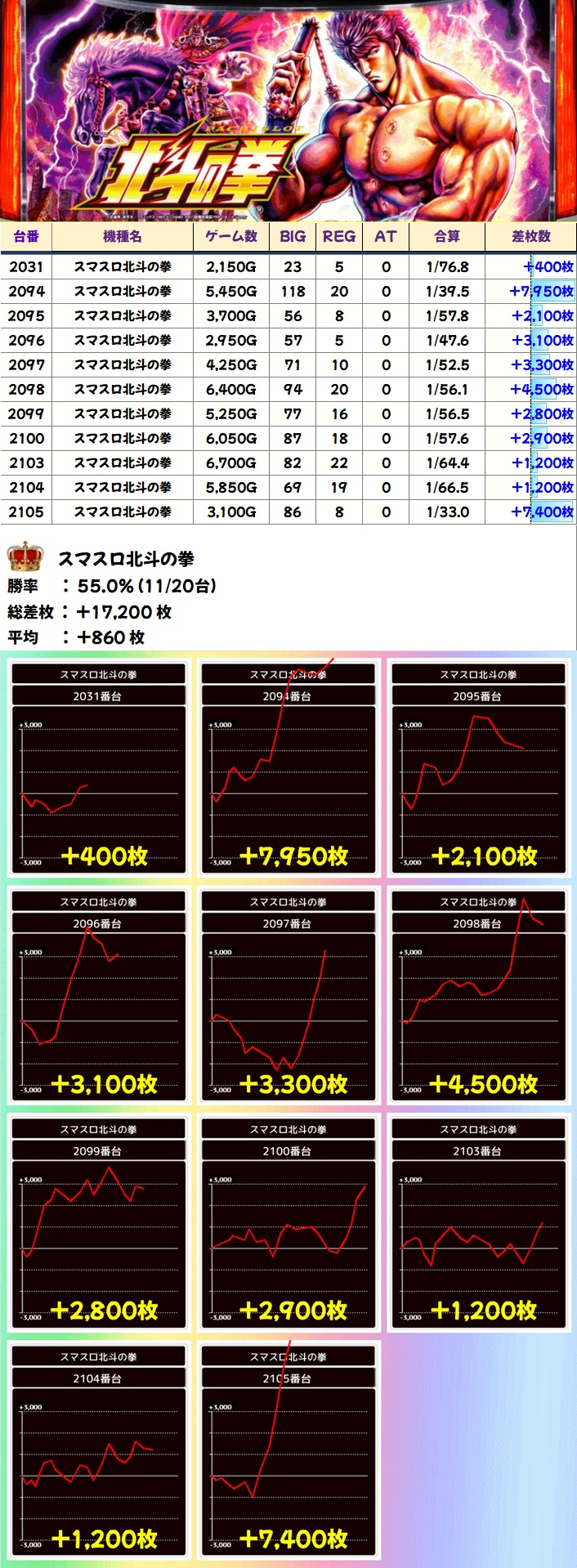スマスロ北斗(2094-2100番)→平均3807枚