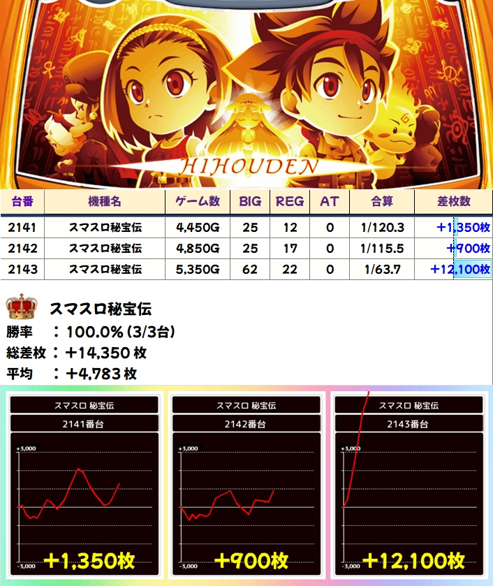 秘宝伝(3/3台+)➡平均+4,783枚