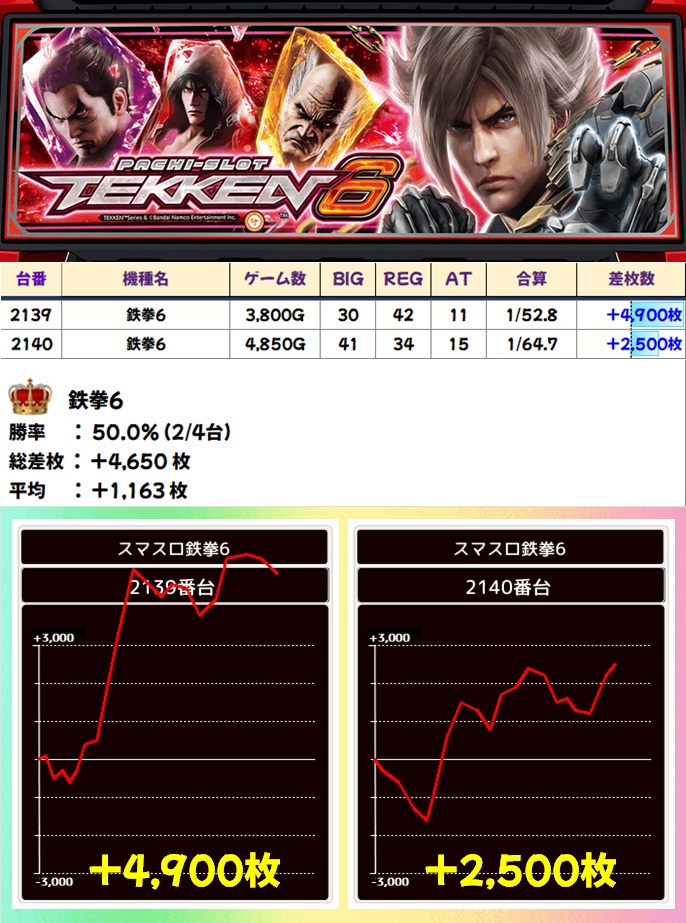 鉄拳6(2/4台+)➡平均+1163枚