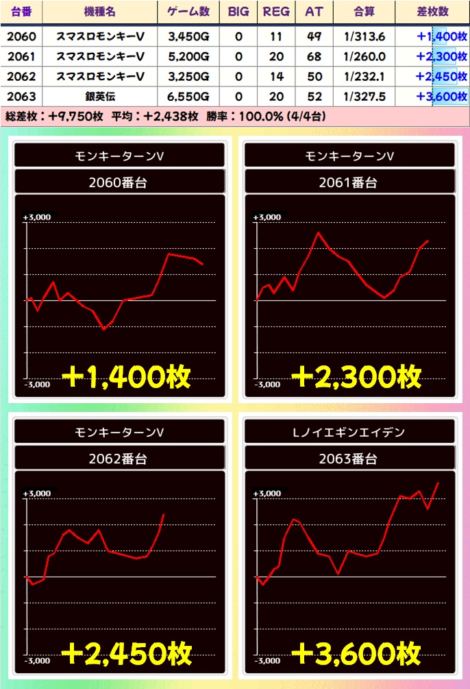 今回も平均+476枚&総差枚+14.3万枚としっかり結果を残しました!
