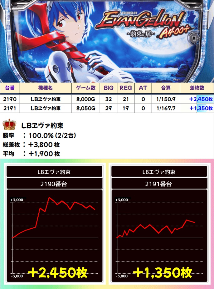 エヴァ約束(2/2台+)➡平均+1,900枚
