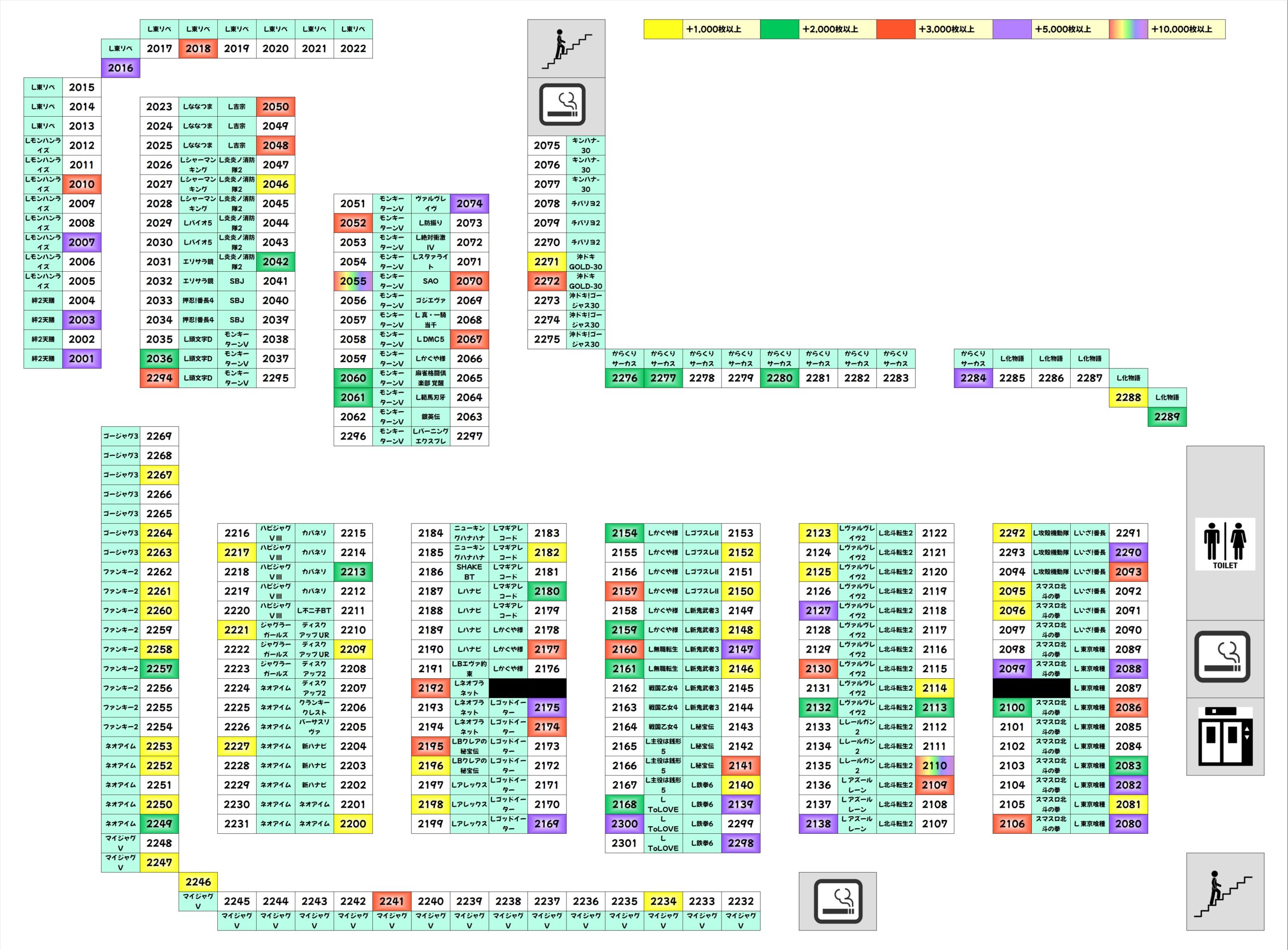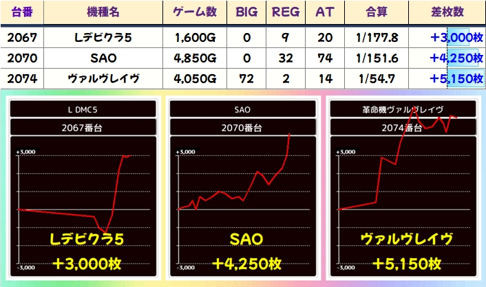 10機種以上が高配分仕掛けで新台や人気スマスロ、ジャグ、少台数など全系と同じく複数エリアに散りばめられていました!スマスロ系からは5000枚超台も多く出現しており、ノーマルのジャグ系も稼働を見れば打ち手は見抜いていたことでしょう!