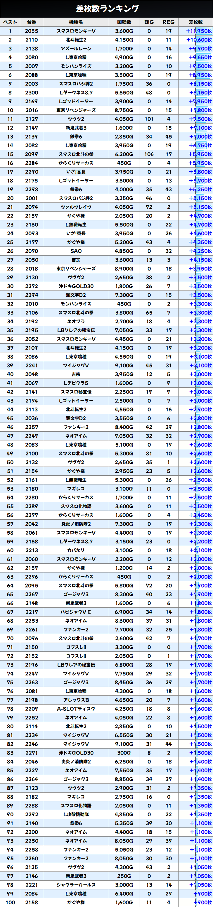 差枚数ランキング&島図をチェック!