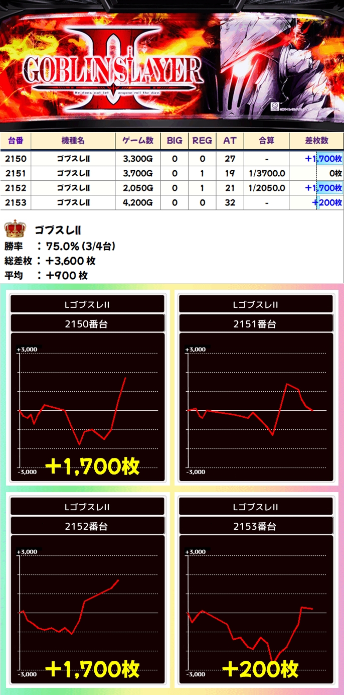 ゴブスレ2(3/4台+)➡平均+900枚