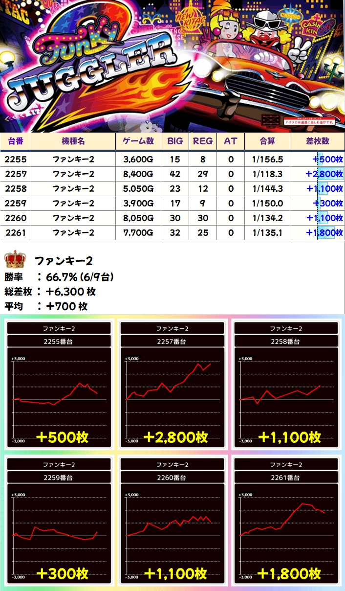 ファンキー2(6/9台+)➡平均+700枚
