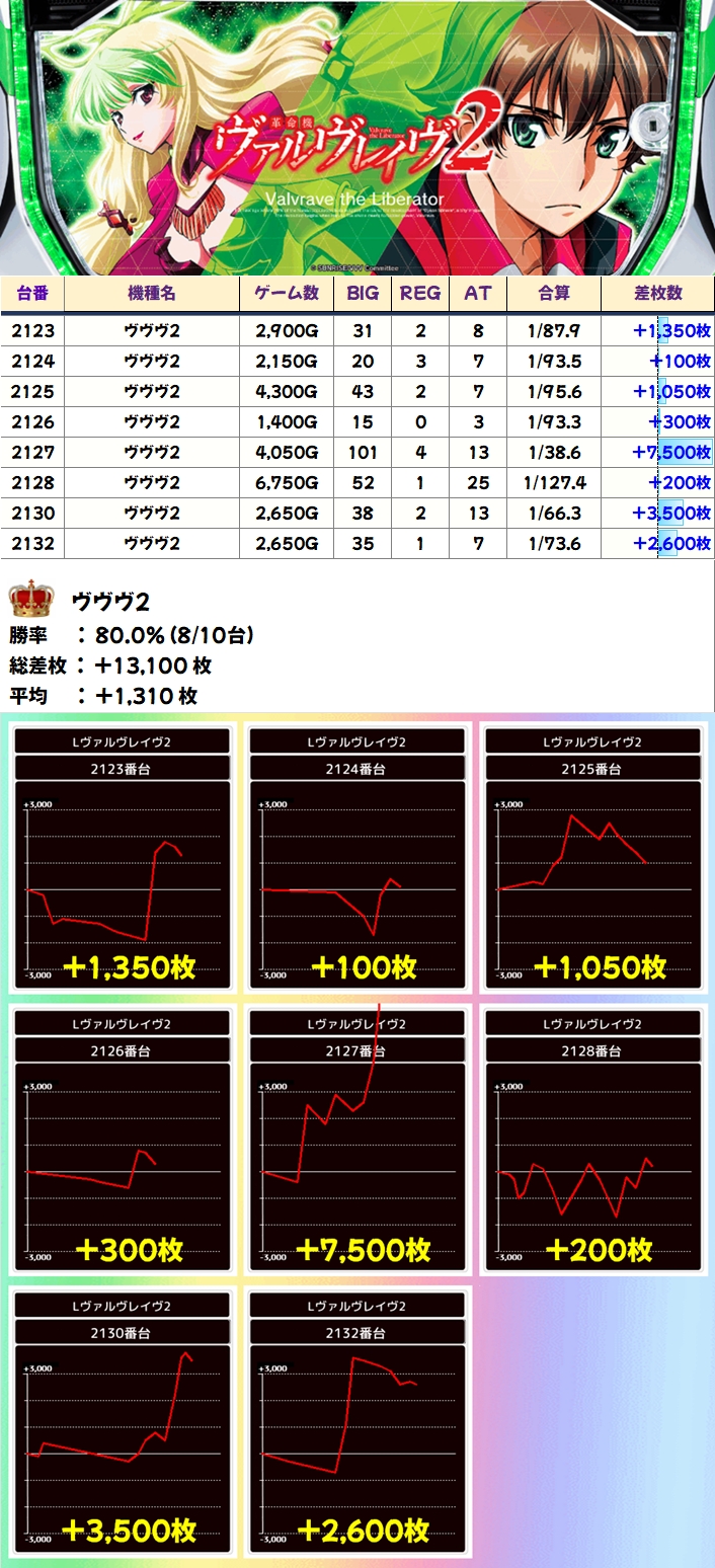 ヴヴヴ2(8/10台+)➡平均+1310枚