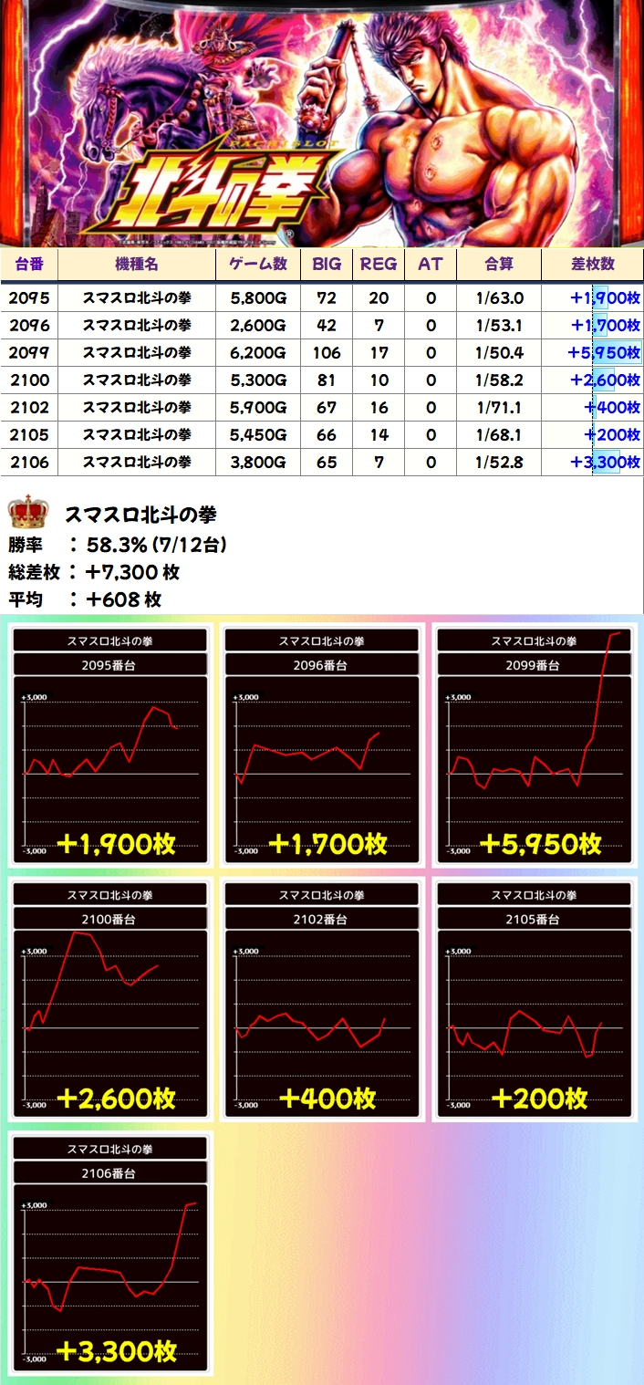 スマスロ北斗(7/12台+)➡平均+608枚