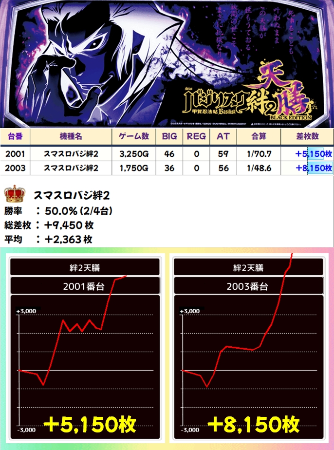 天膳ブラック(2/4台+)➡平均+2363枚