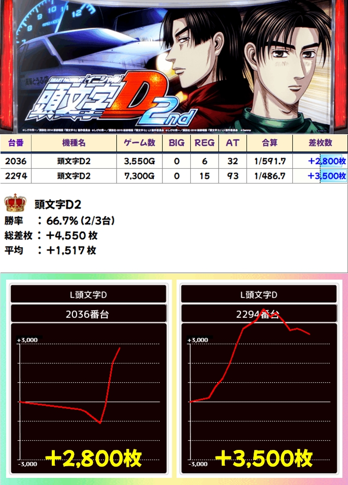 頭文字D2(2/3台+)➡平均+1517枚