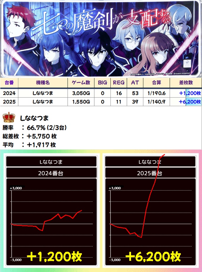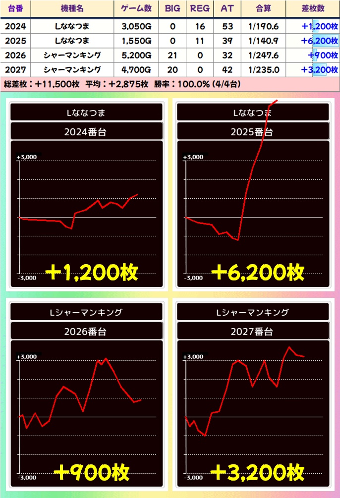 ななつま&マンキン(2024-2027番台+)➡平均+2875枚