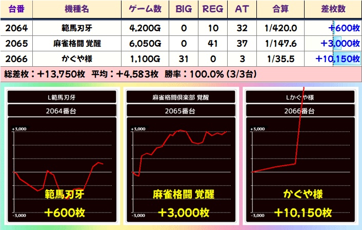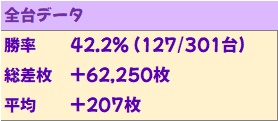 今回は平均+207枚&総差枚+6.2万枚超と好成績!連勝記録継続中!