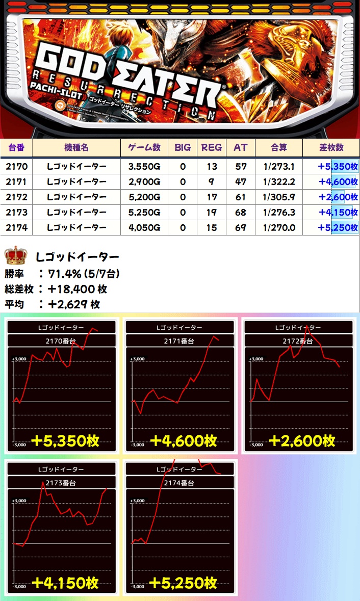 ゴッドイーター(5/7台+)➡平均+2,629枚