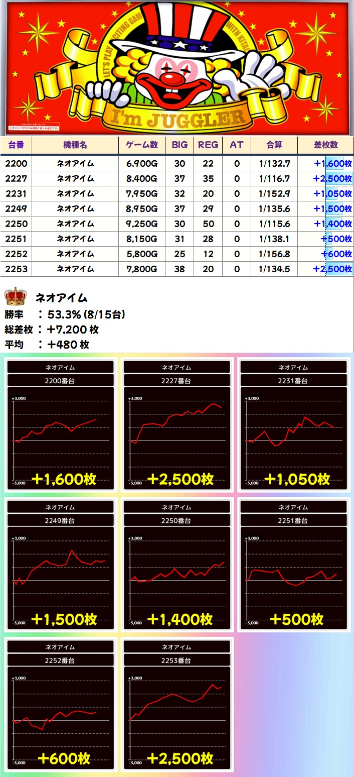ネオアイム(2249-2253番台+)➡平均+1300枚