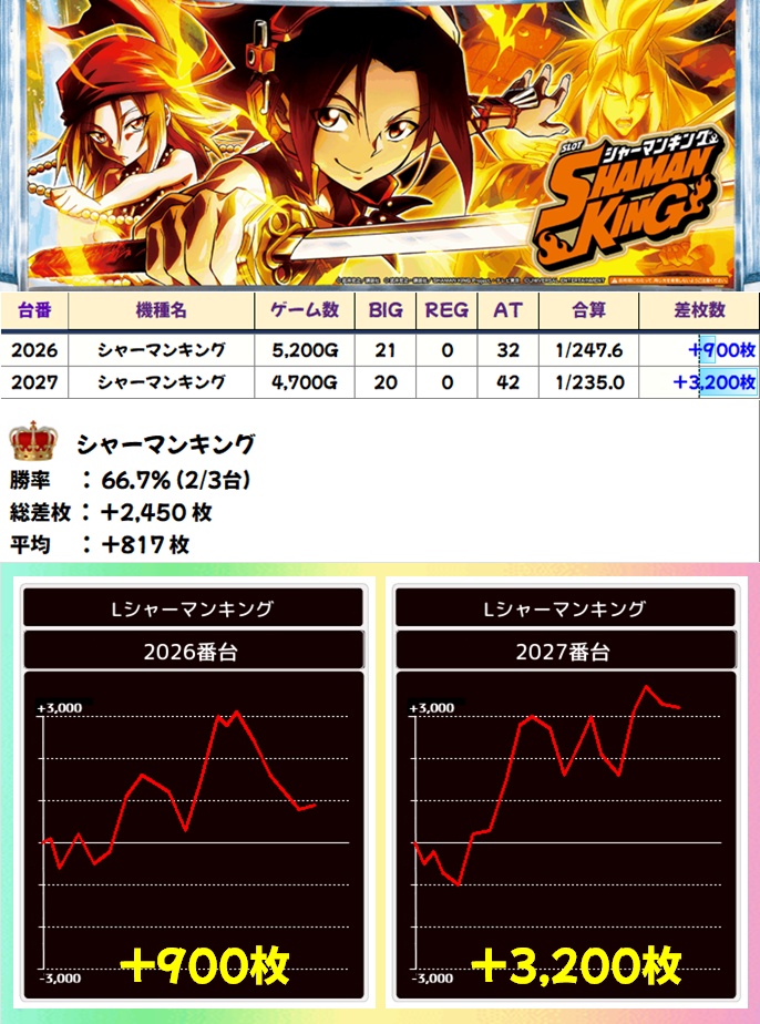 シャーマンキング(2/3台+)➡平均+817枚