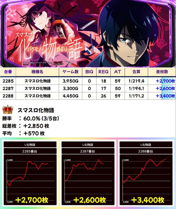 スマスロ化物語(3/5台+)➡平均+570枚