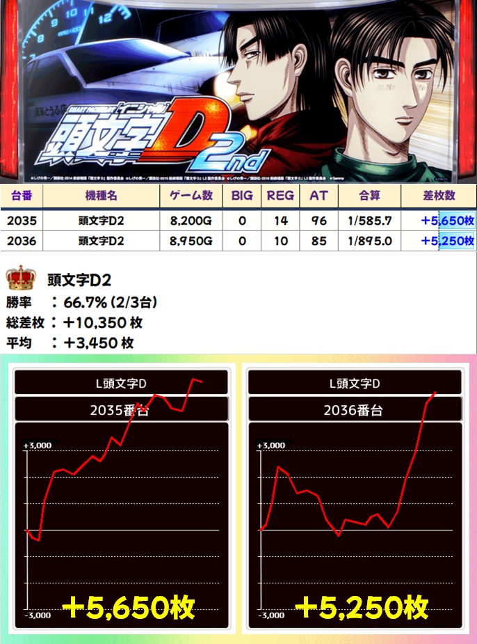 頭文字D2(2/3台+)➡平均+3450枚