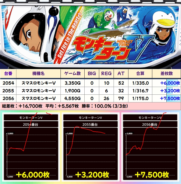 【3台並び】モンキーターンV(2054-2056番台)→平均+5567枚