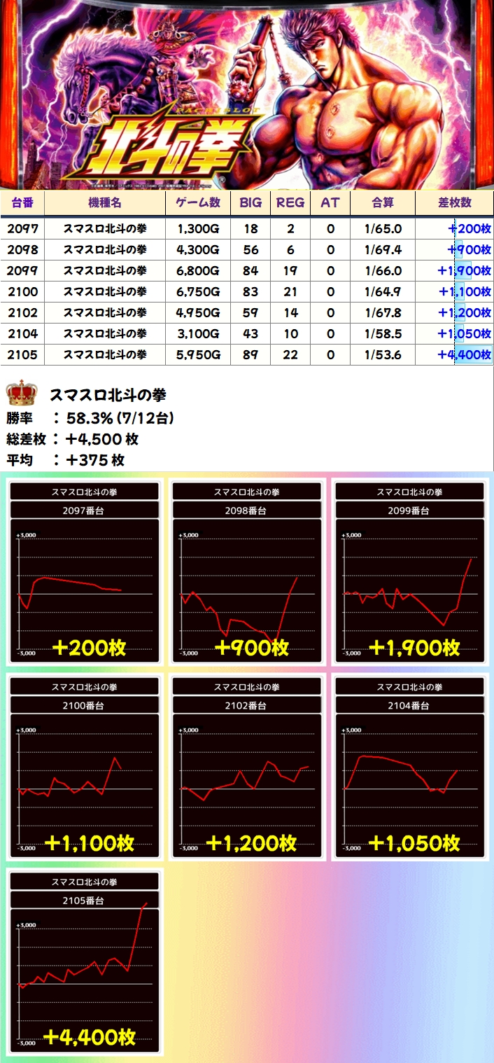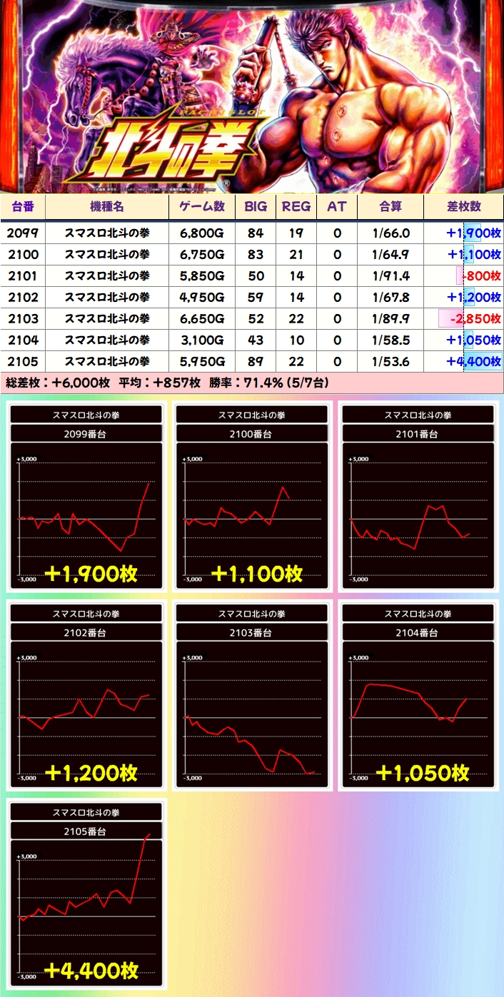 【7台並び】スマスロ北斗(2099-2105番台)→平均+857枚