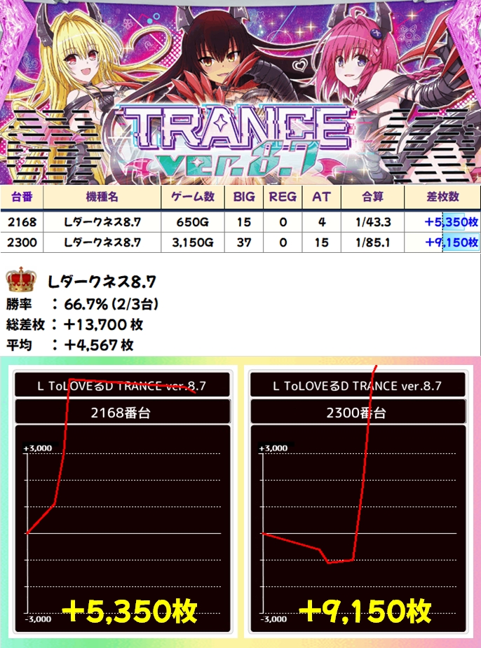 ToLOVEる8.7(2/3台+)➡平均+4567枚