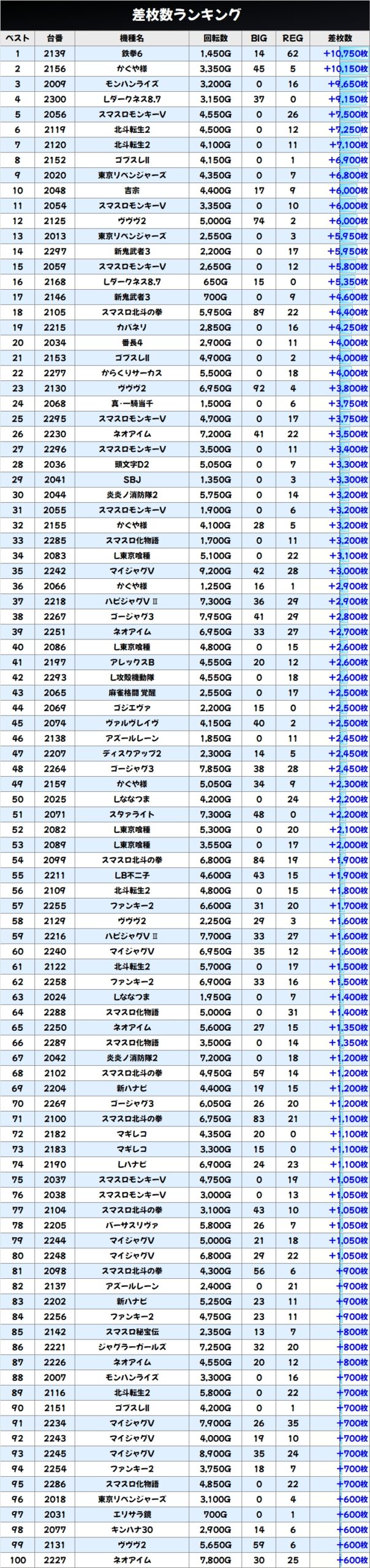 差枚数ランキング&島図をチェック!