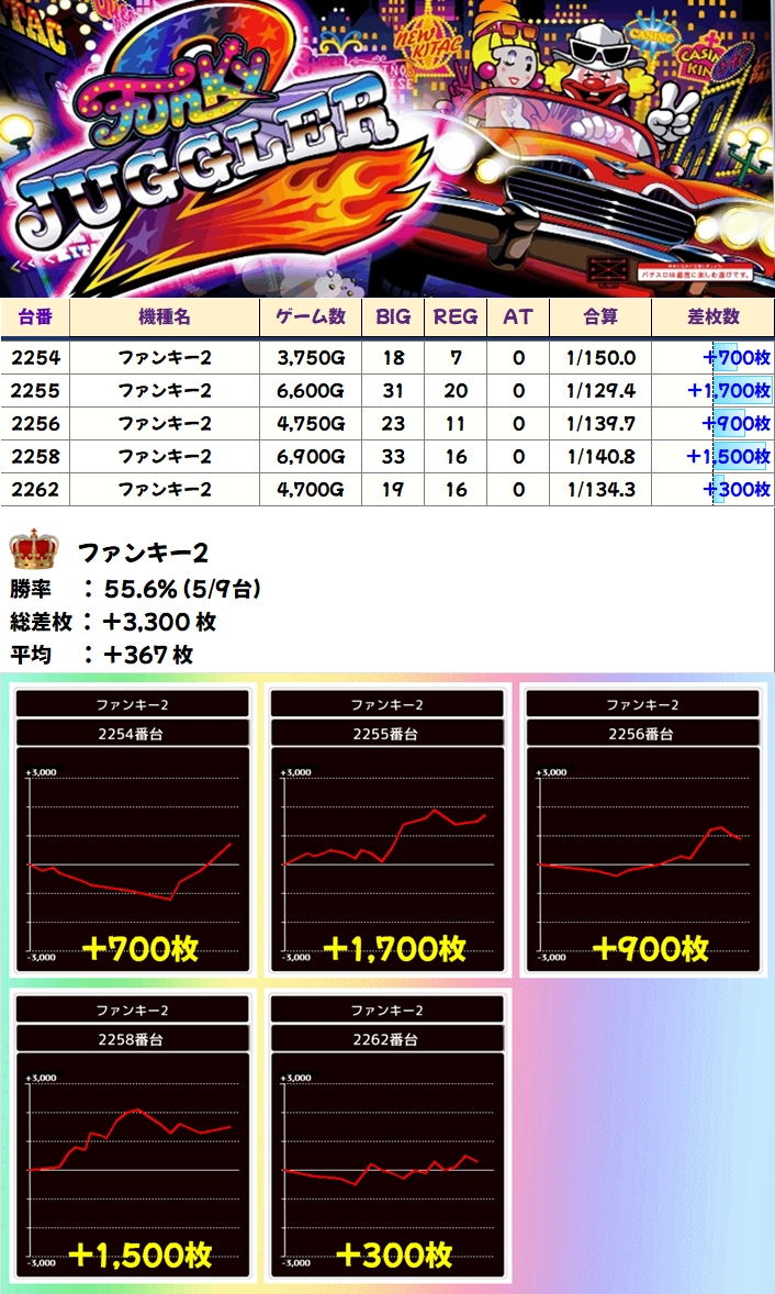 ファンキー2(5/9台+)➡平均+367枚
