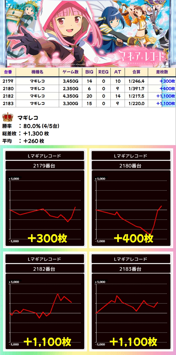 マギレコ(4/5台+)➡平均+260枚
