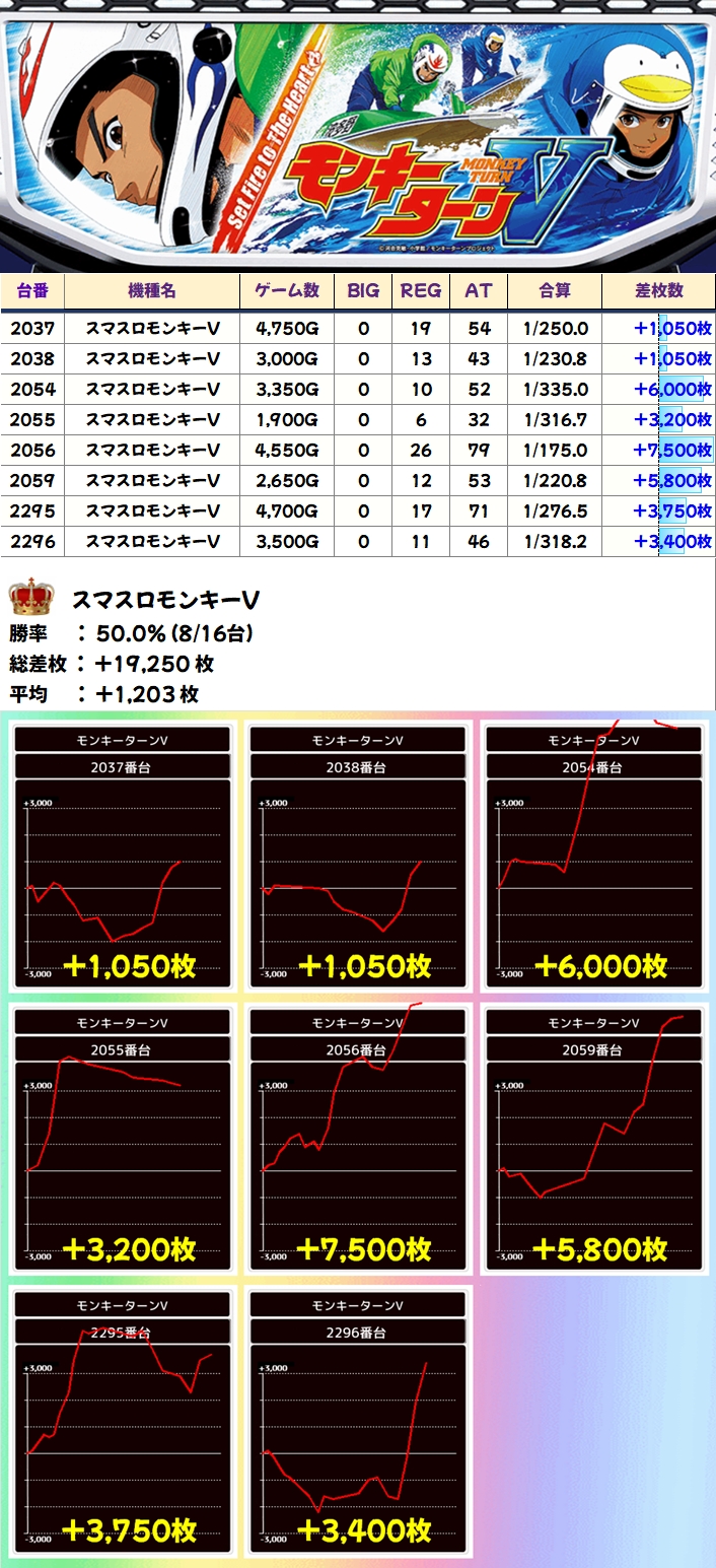 モンキーターンV(8/16台+)➡平均+1203枚