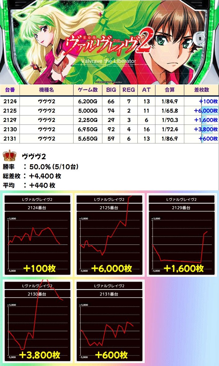 ヴヴヴ2(5/10台+)➡平均+440枚