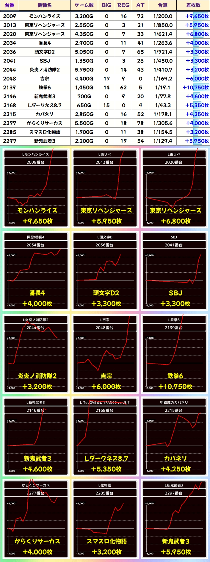 仕掛け以外にもスマスロから大量獲得台多数確認!鉄拳6やモンハンライズからは万枚クラスの爆裂台も!
