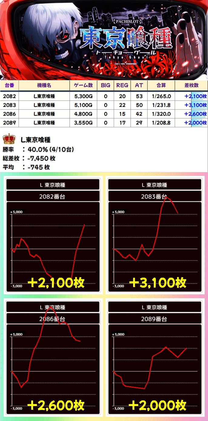 プラス差枚が当たり前の7の日なので、今回も平均約150枚のプラスと好成績!