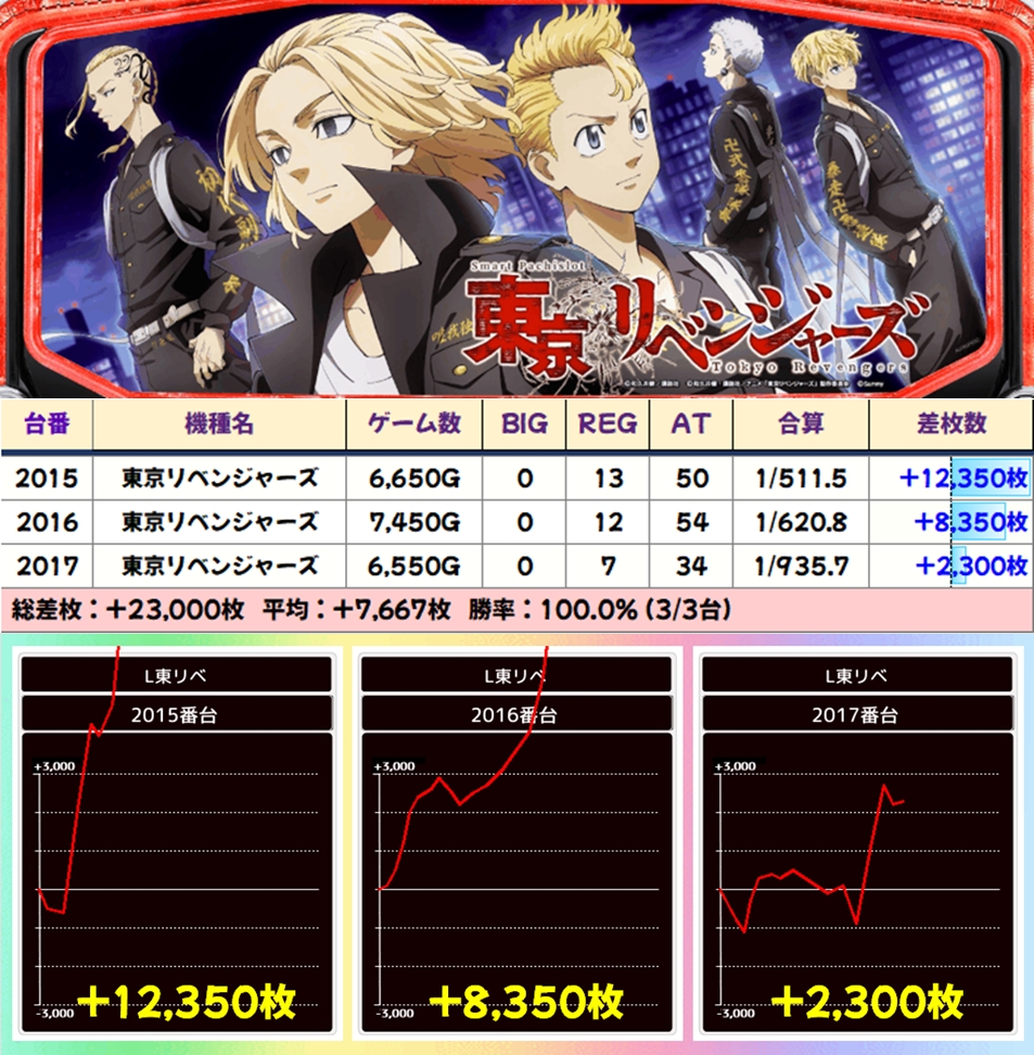 3台以上の並びも複数あり、東リべやヴヴヴ2など高配分仕掛けにない機種も優秀並びが出現しました!出玉面では東リべや北斗が優秀で万枚超台あり!