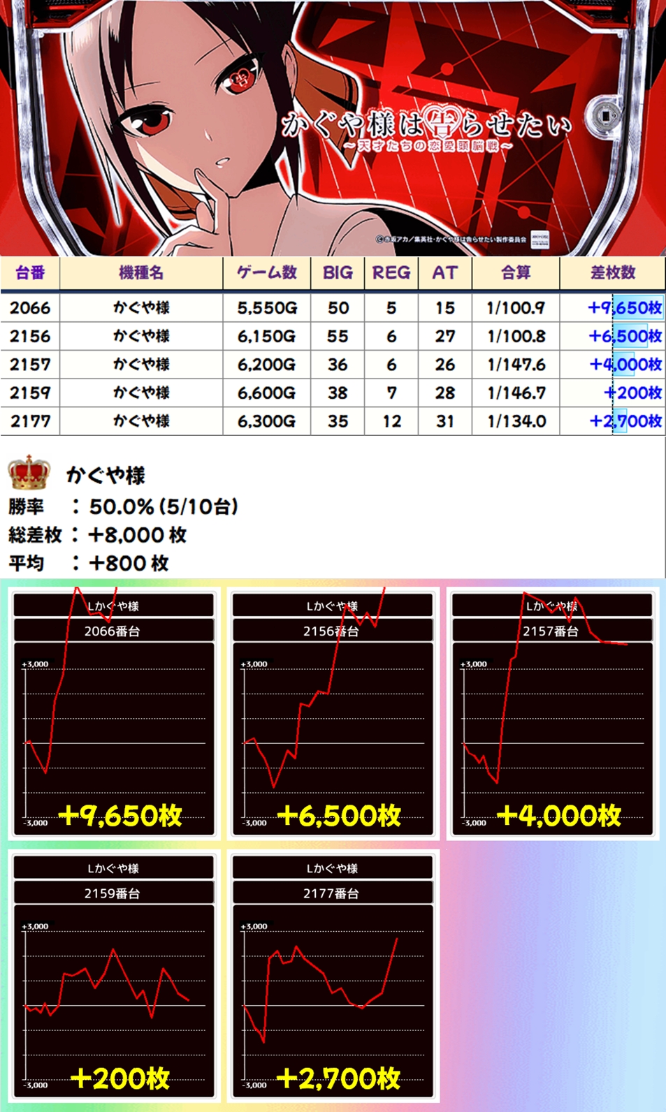 かぐや様(5/10台+)➡平均+800枚