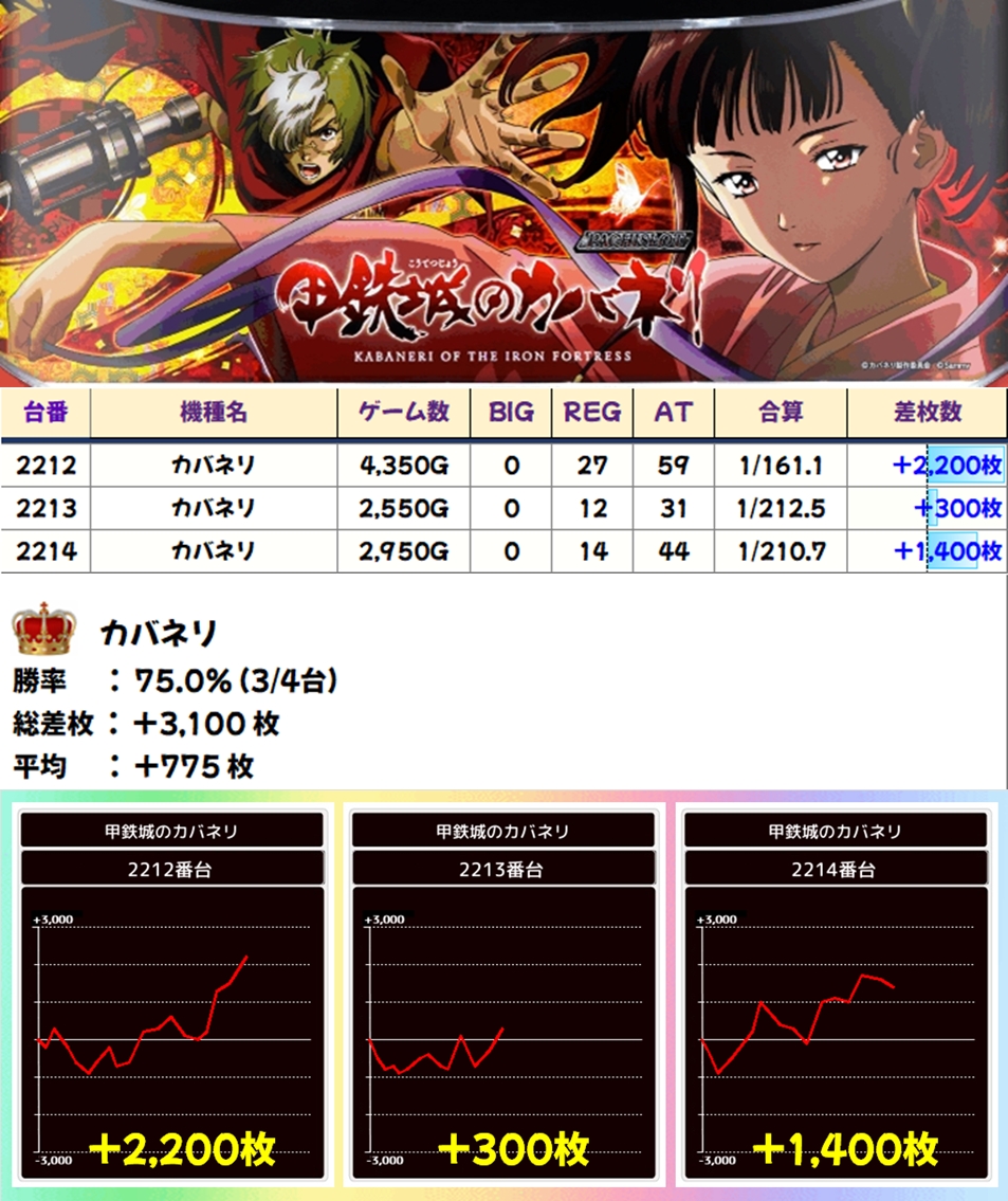 カバネリ(3/4台+)➡平均+775枚