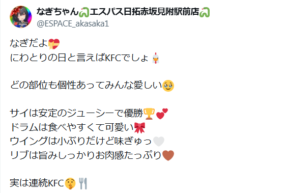 公式Xでは「なぎちゃんの独り言」もしっかり発動。公式Xのお知らせは大体20時に、そこから30分後に独り言がポストされる傾向にあるので、しっかりチェックしておきましょう。