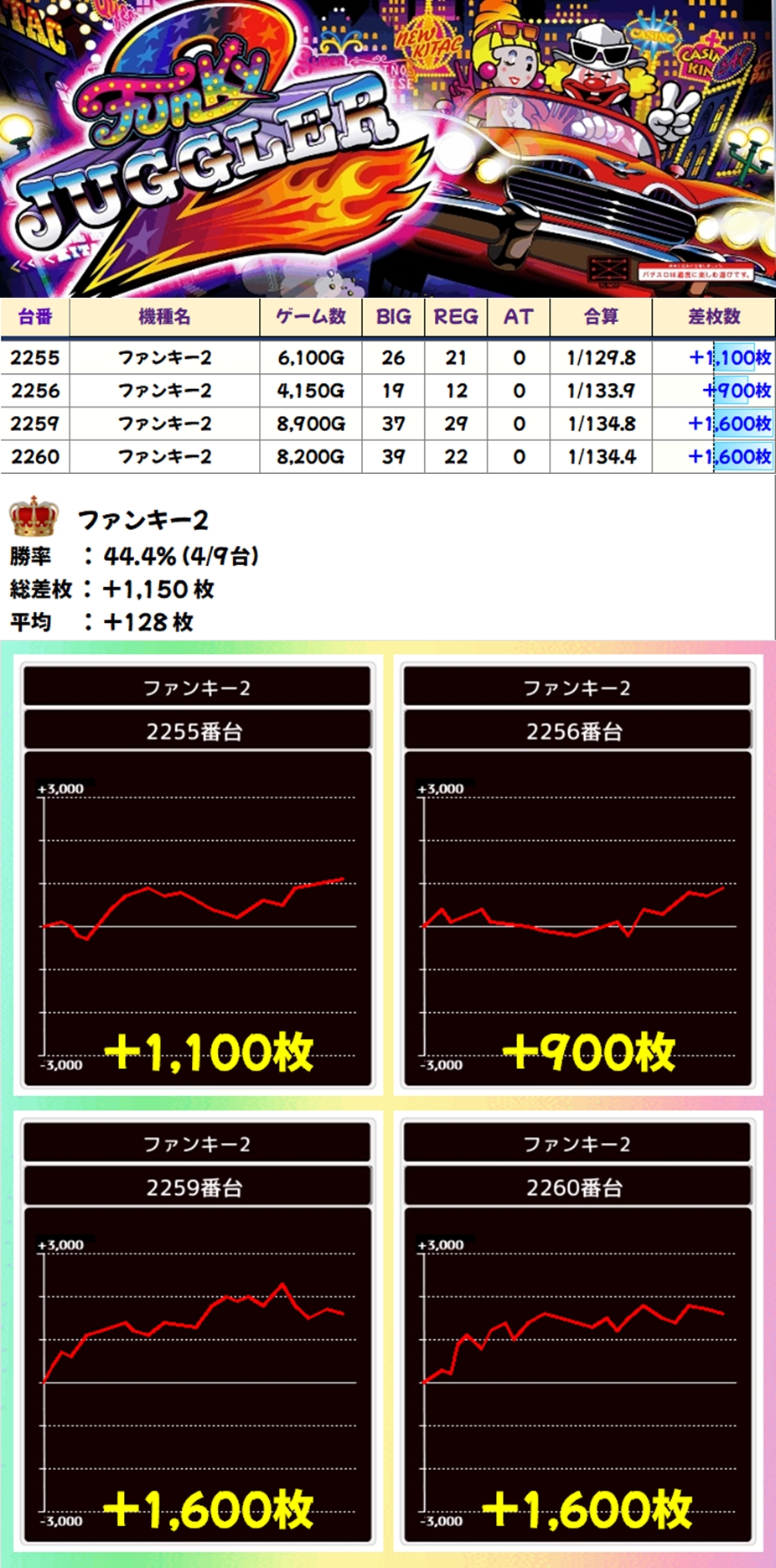 ファンキー2(4/9台+)➡平均+128枚