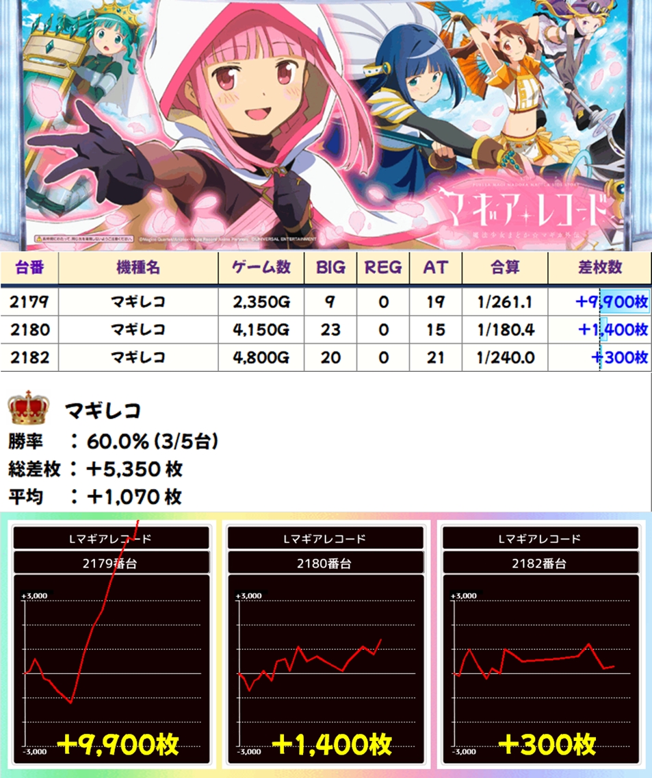マギレコ(3/5台+)➡平均+1,070枚