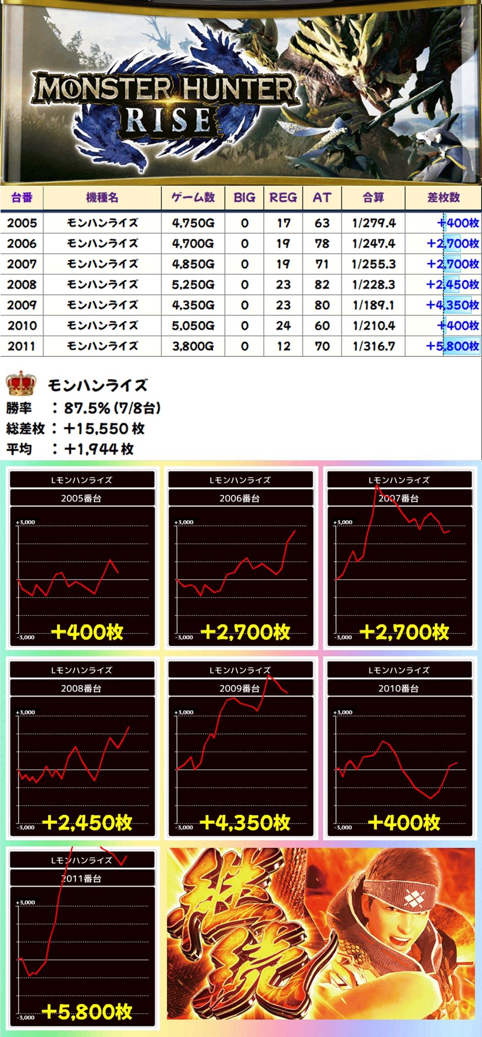 モンハンライズ(7/8台+)➡平均+1,944枚