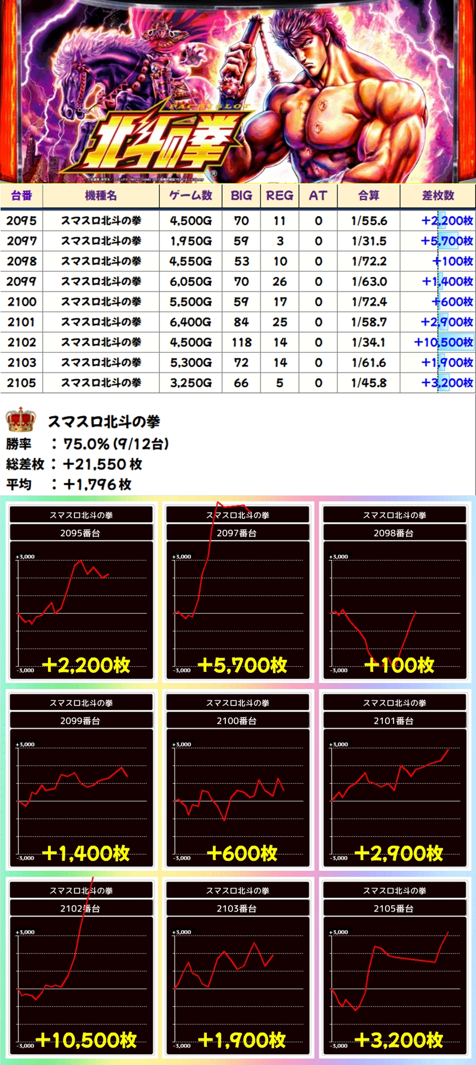 スマスロ北斗(9/12台+)➡平均+1,796枚