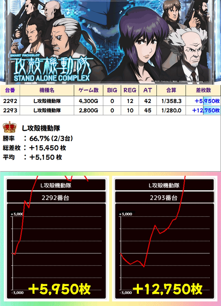 攻殻機動隊(2/3台+)➡平均+5,150枚