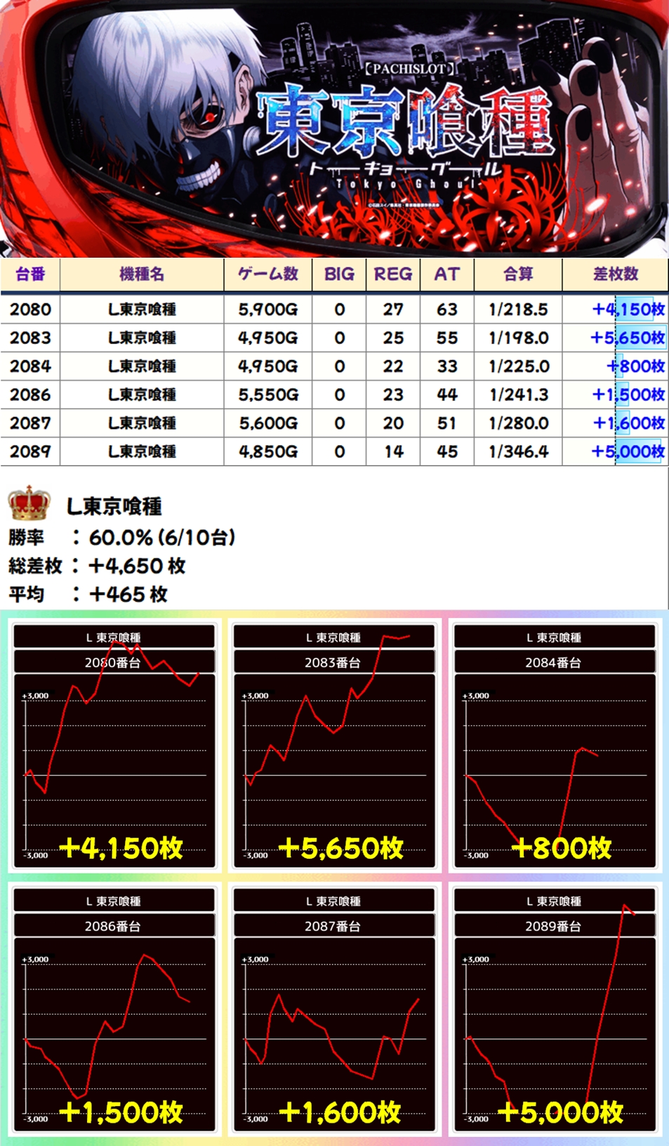 東京喰種(6/10台+)➡平均+465枚