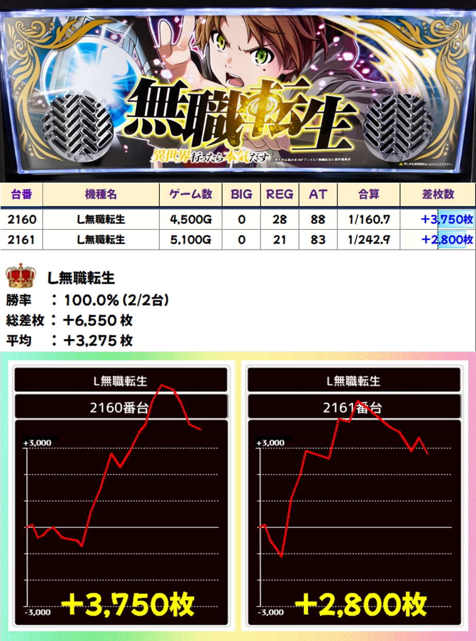 無職転生(2/2台+)➡平均+3,275枚