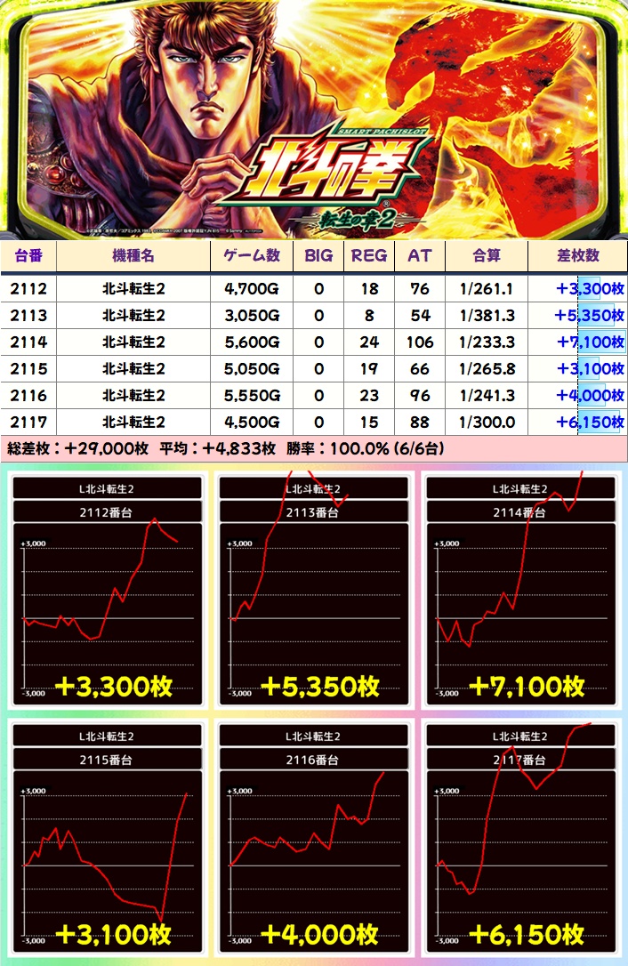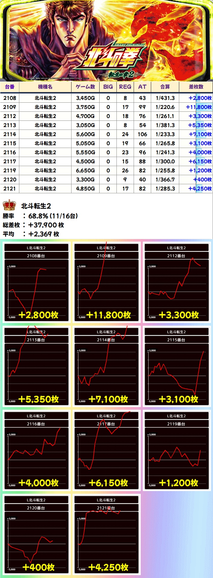 北斗転生2(2112-2117番台+)➡平均+4833枚
