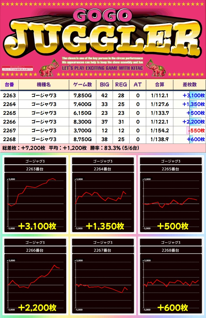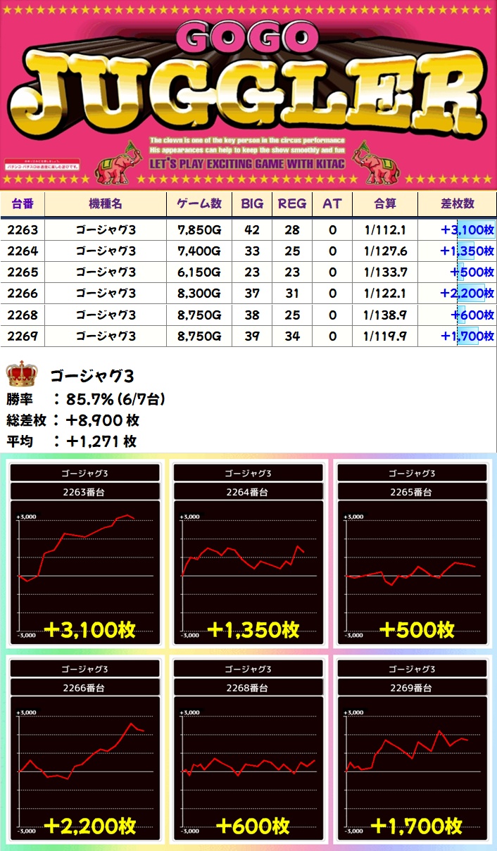 ゴージャグ3(2263-2268番台+)➡平均+1200枚