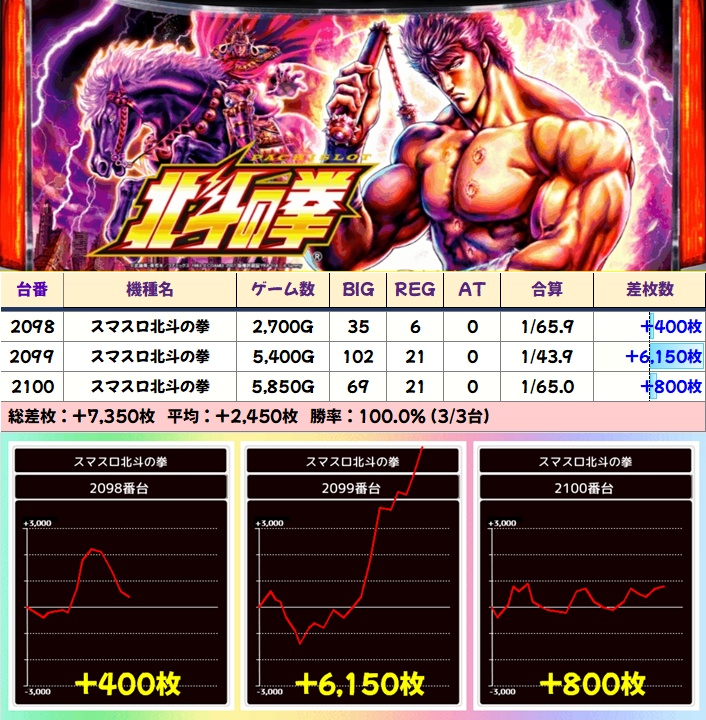 スマスロ北斗(2098-2100番台+)➡平均+2450枚