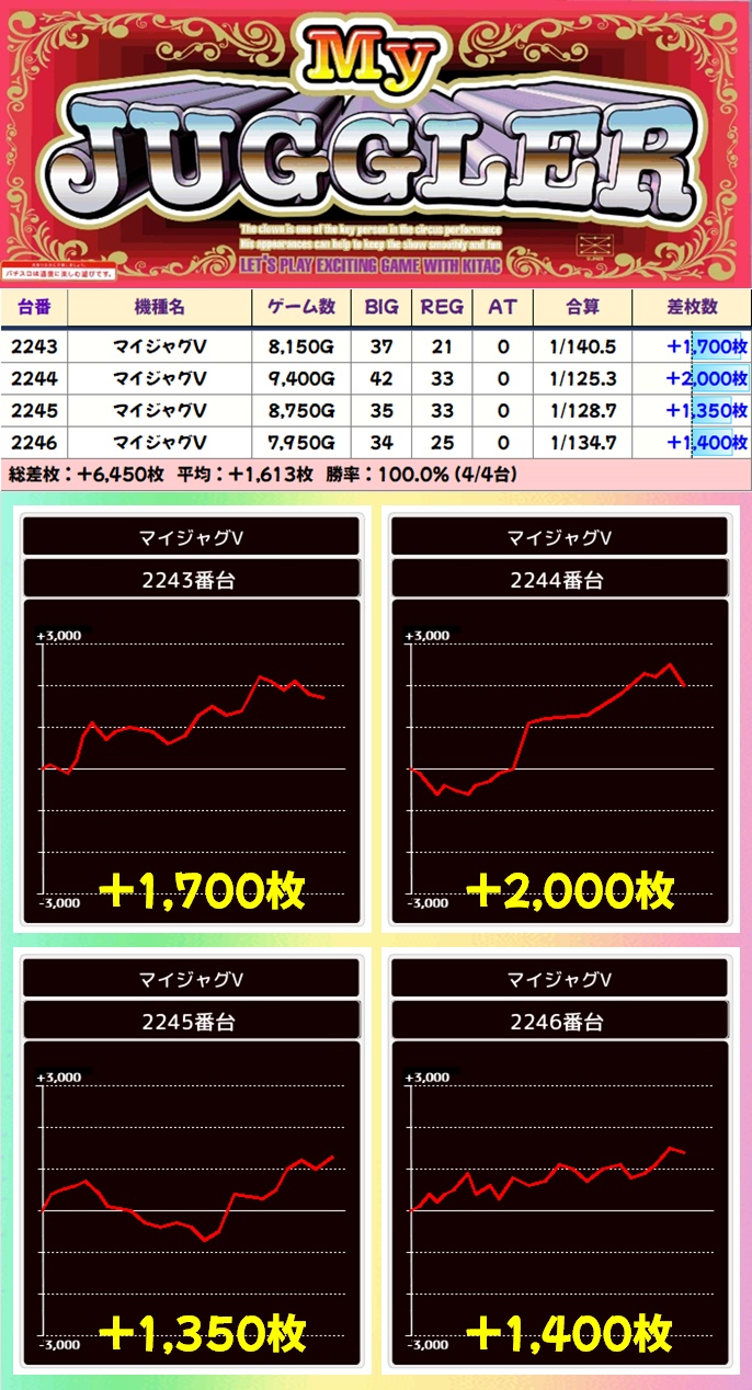 マイジャグV(2243-2246番台+)➡平均+1613枚