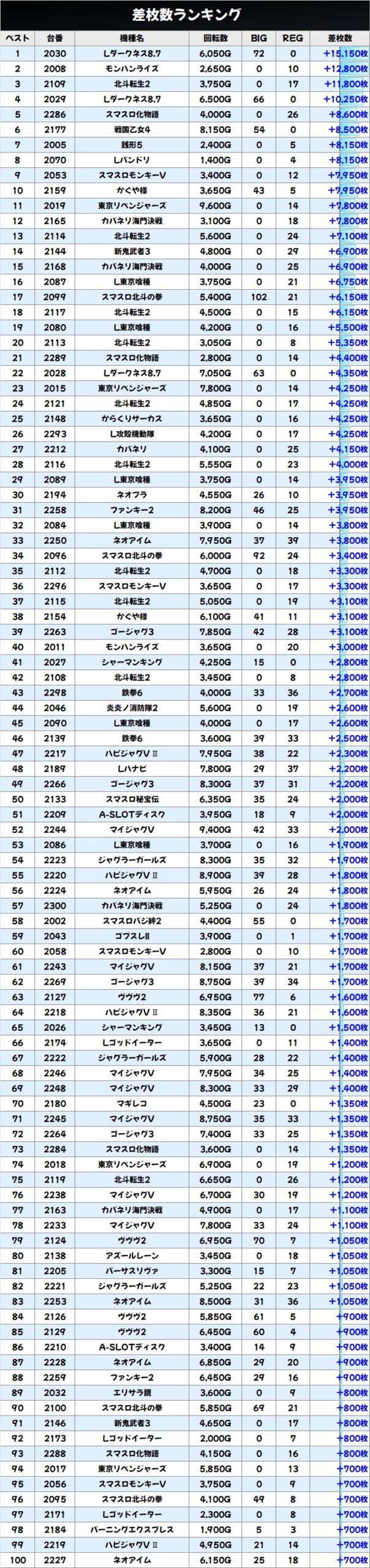 3台以上の優秀並びも複数あり!高配分と重複する機種もあれば並びだけで結果を残す台などさまざまでした!