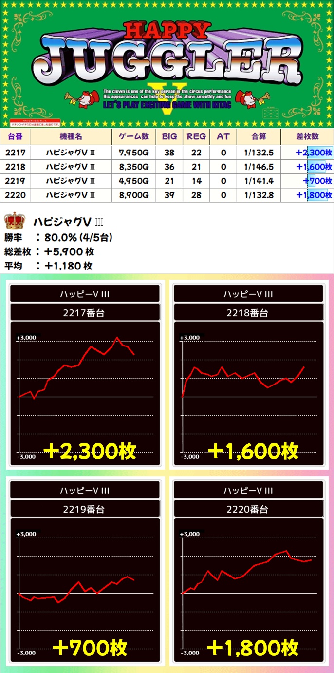 ハピジャグ(4/5台+)➡平均+1,180枚